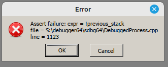 Instead there exist Stop button in the middle top of SDBG. But the problem is that usually after one two pushes on this button appears the warning with the Access violation like this.